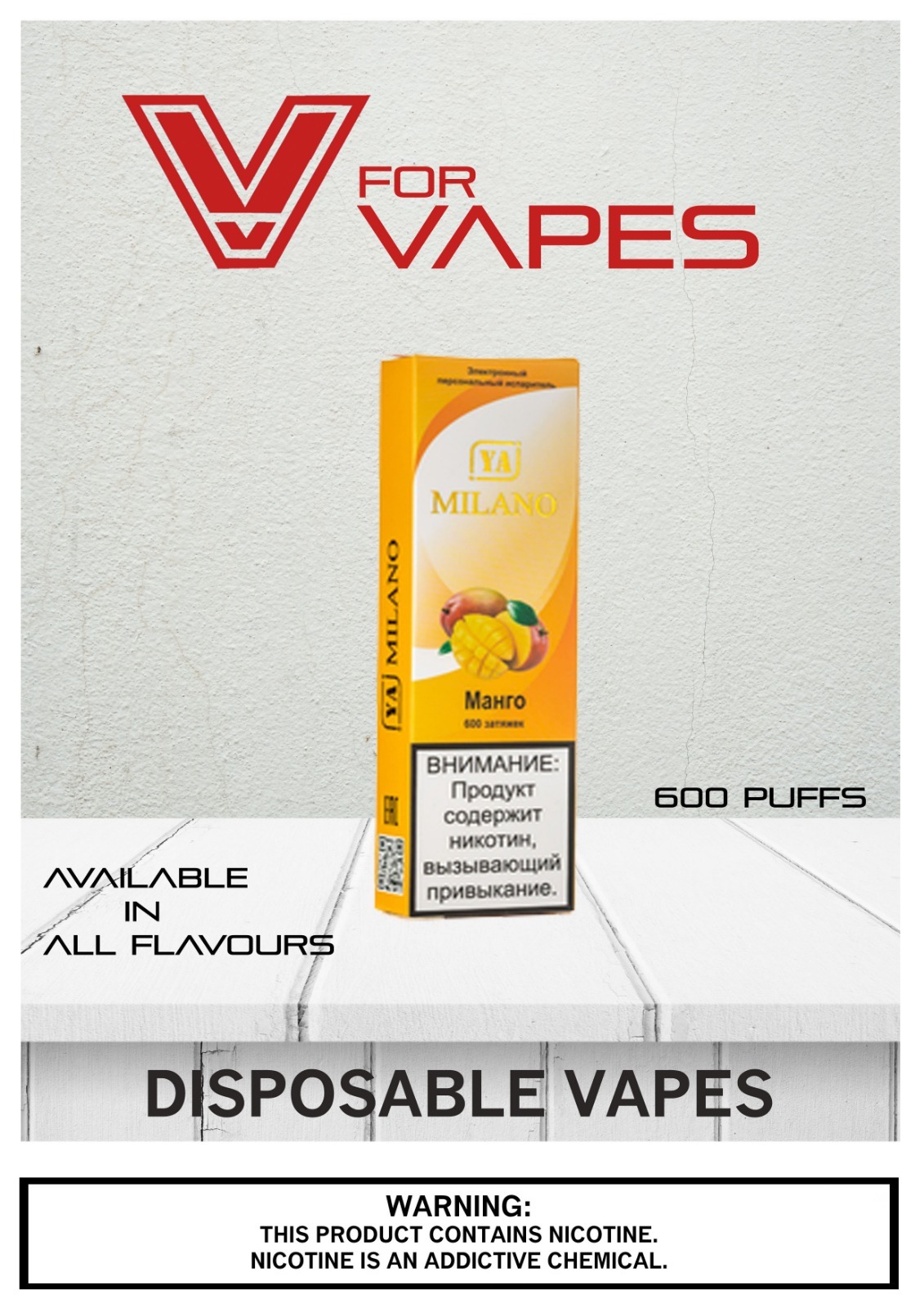 | Flavors | Mango, Mint, Classic Tobacco, Blueberry, Strawberry, Grape, Lychee Ice, Peach Ice, Banana Ice, Watermelon Ice |